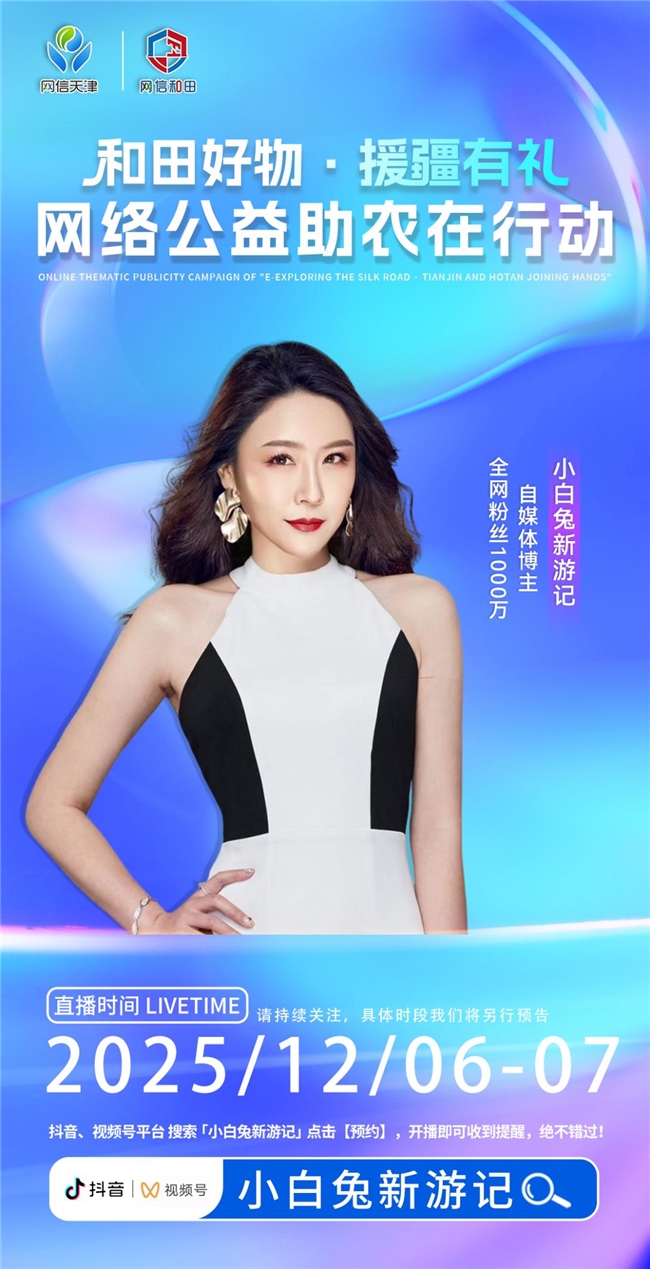 本次“和田好物·援疆有礼”网络公益助农在行动是"e探丝路·津和同行"网络主题宣传系列活动的重要一环;一场以"官方力量搭台、网络名人力量唱戏"为特色的网络公益助农直播将于12月6日至7日举行,特邀请天津百万粉丝网络名人“小白兔新游记”通过直播镜头向全国网友全方位展示和田特色农特产品与文化魅力。本次活动由天津市委网信办、和田地委网信办、天津援疆前方指挥部联合打造,旨在通过网络直播方式全方位展示和田特色产品,助推本土优质农产品"乘网出圈"。